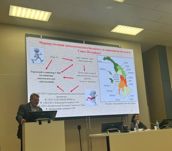 Соловьев Иван Анатольевич, д.м.н., профессор, заместитель главного врача СПб ГБУЗ «Мариинская больница» по хирургии, поделился опытом хирургического лечения опухолей органов брюшной полости в условиях многопрофильного стационара. Особое внимание он уделил вопросам правильной маршрутизации пациентов и выбору оптимальной хирургической тактики.